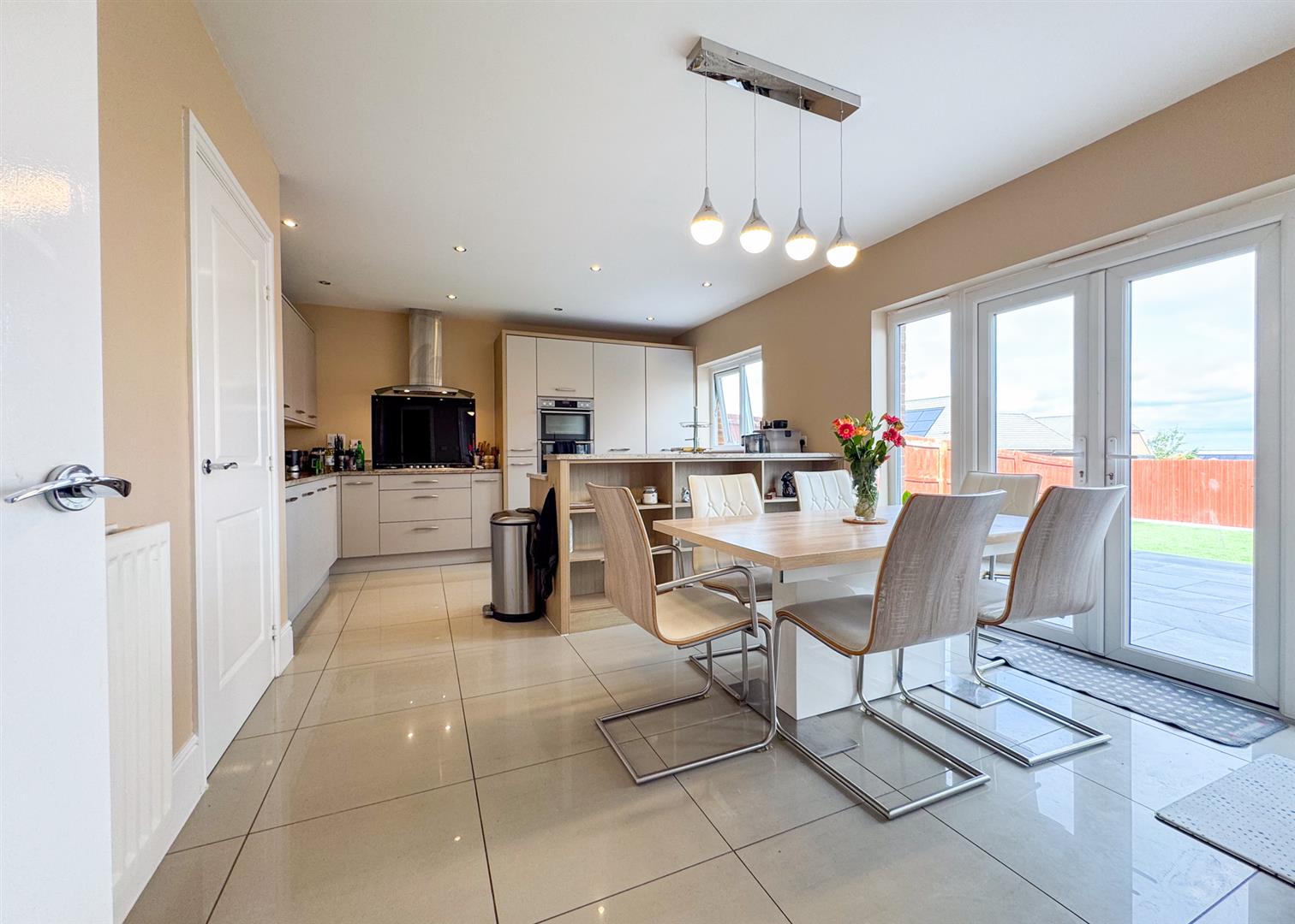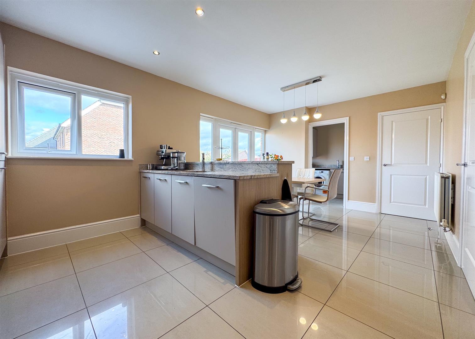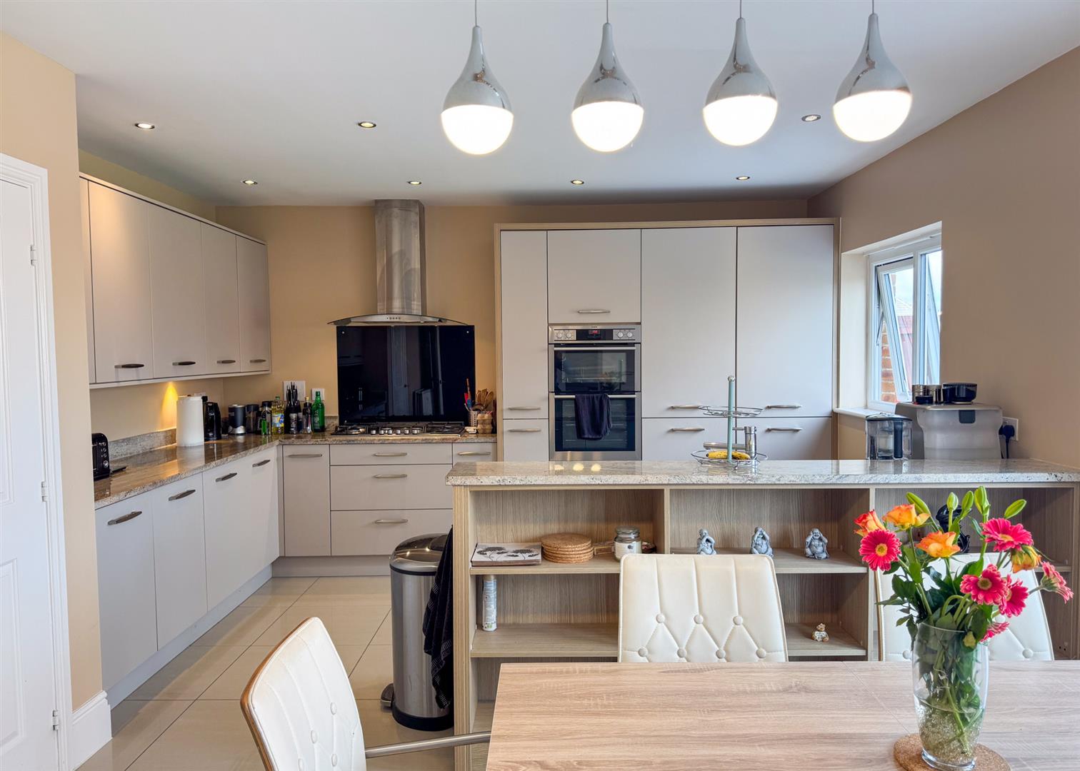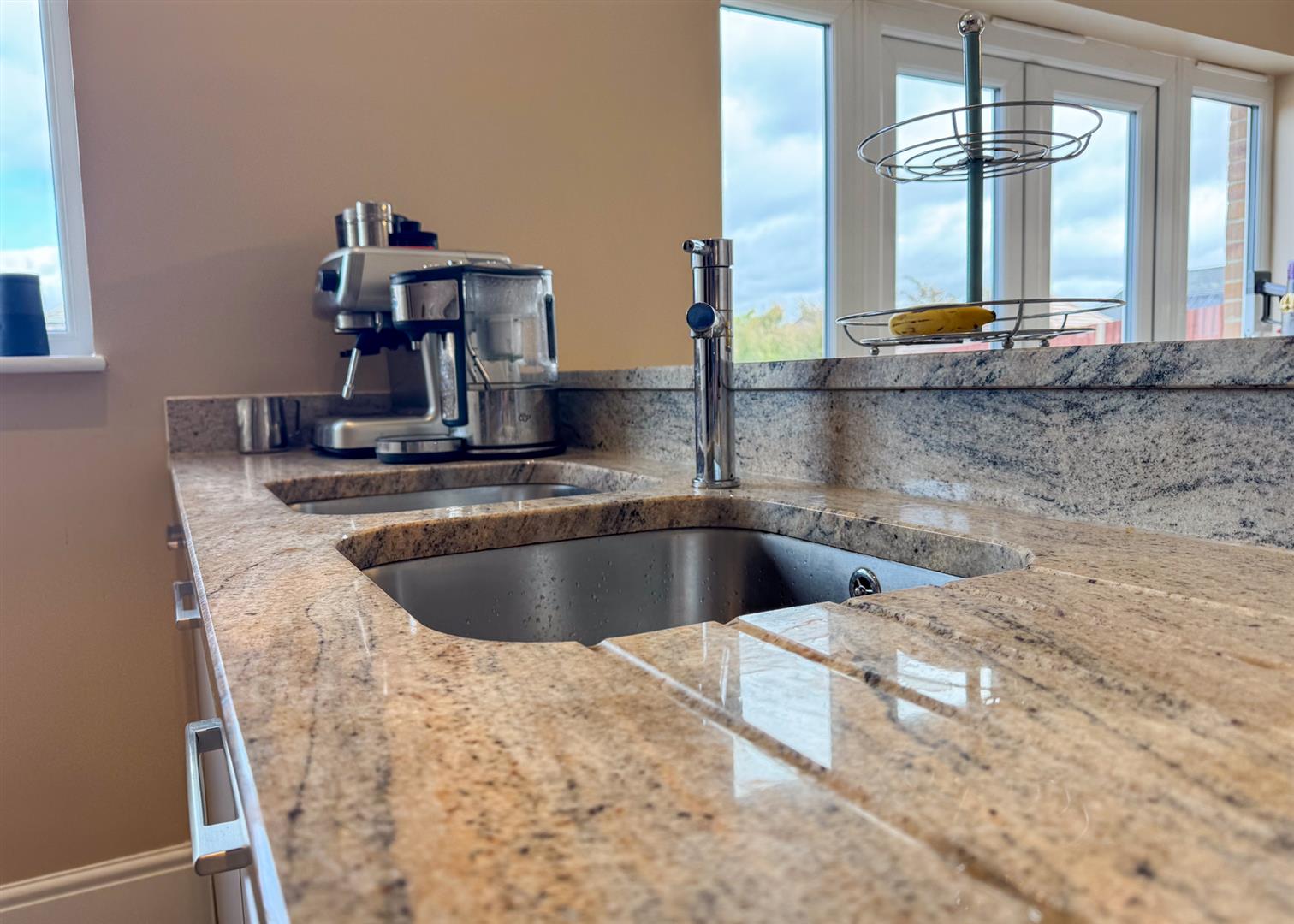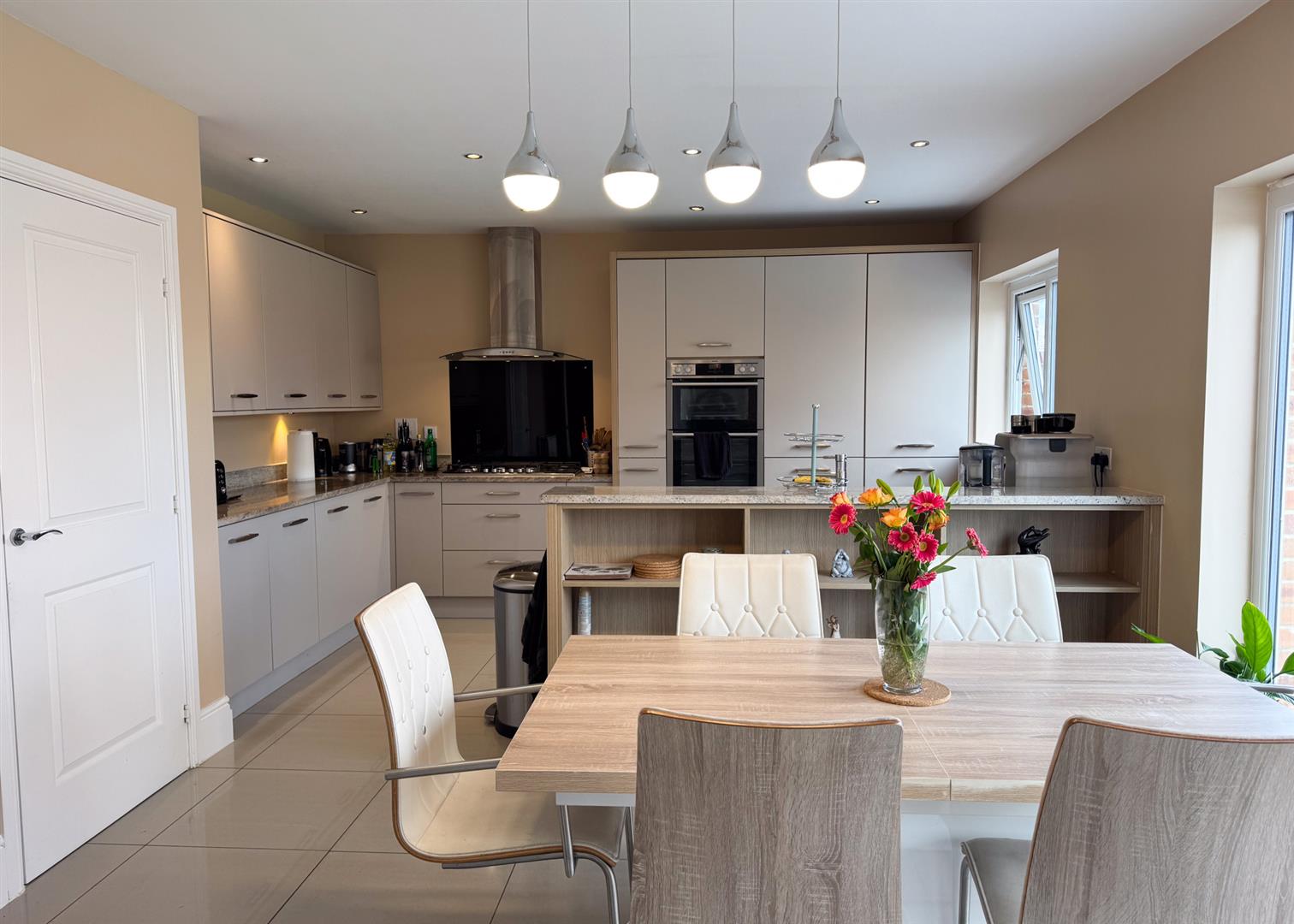 The interior is presented in excellent condition throughout and has been thoughtfully upgraded to a high standard. A bright and welcoming hallway gives access to the principal ground floor rooms, where a spacious lounge provides the perfect setting for relaxed evenings with family and friends. At the heart of the home lies the impressive open-plan kitchen/diner/breakfast room, finished with premium granite worktops and designed to accommodate both entertaining and everyday living. French doors open directly onto the garden, allowing natural light to flood the space and offering a seamless flow between indoors and outdoors. A practical utility room ensures household tasks remain discreet, while a versatile study/snug provides flexibility for home working, a playroom, or a quiet retreat. A guest W.C completes the ground floor.