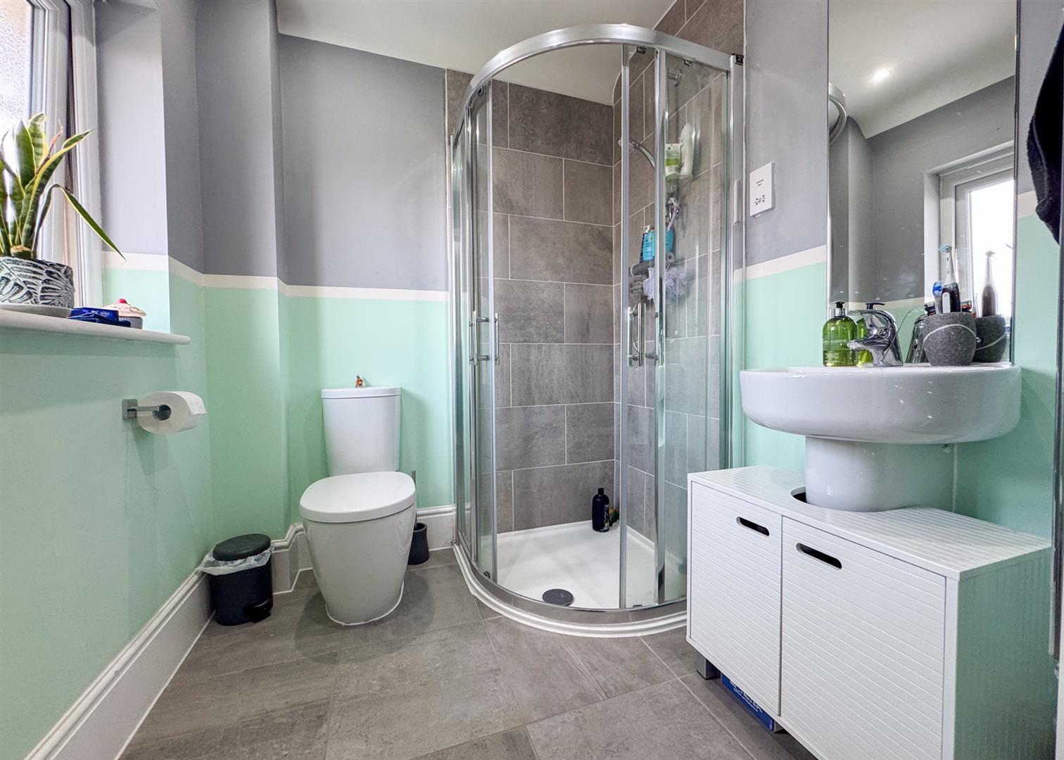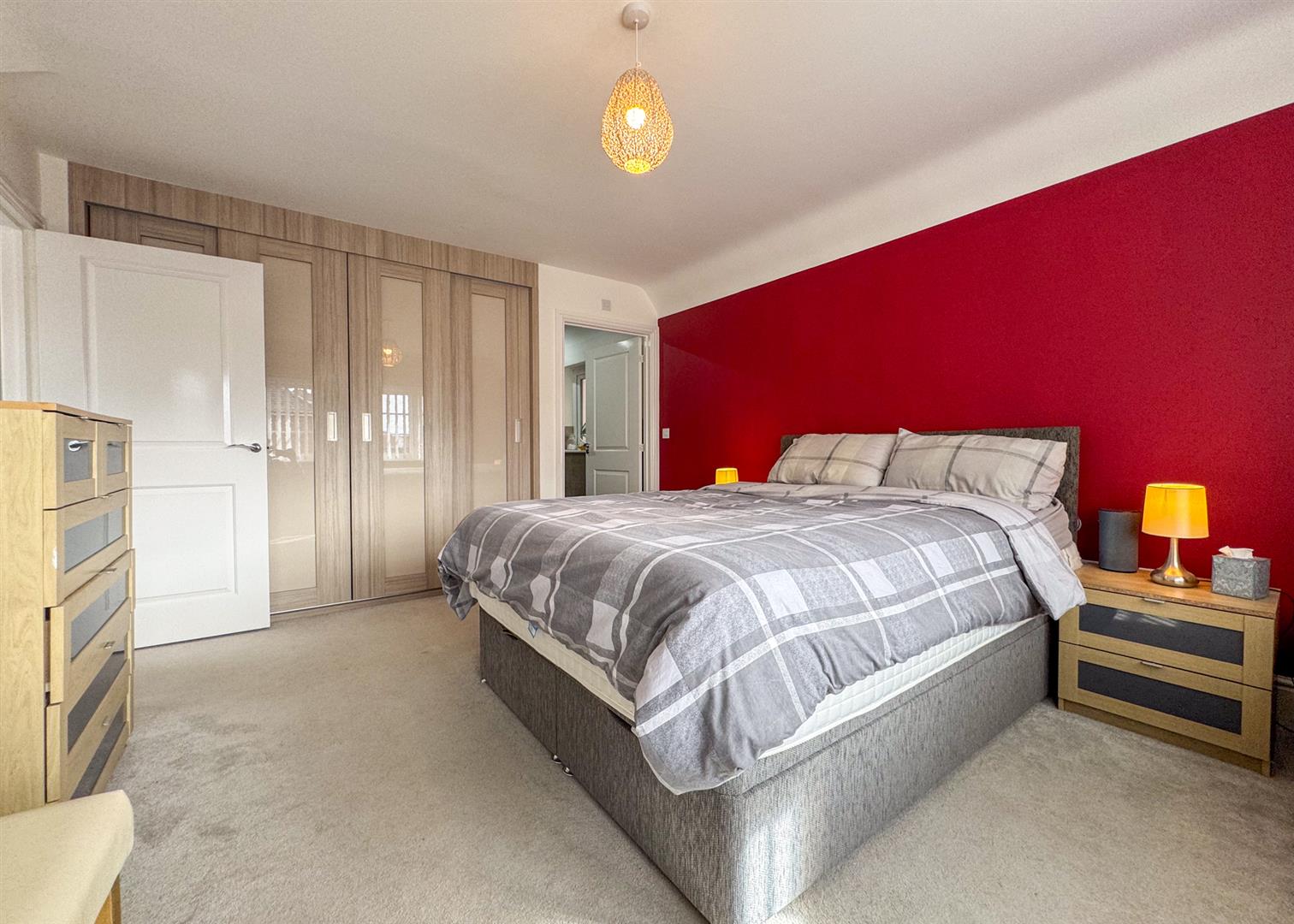Upstairs, the first-floor landing leads to four well-proportioned bedrooms. The master suite has been tastefully upgraded to create a true sanctuary, boasting a contemporary en-suite with modern tiling and a luxurious walk-in waterfall shower. The second bedroom also benefits from its own en-suite, perfect for guests or growing teenagers, while bedrooms three and four are both generously sized and served by a stylish family bathroom.