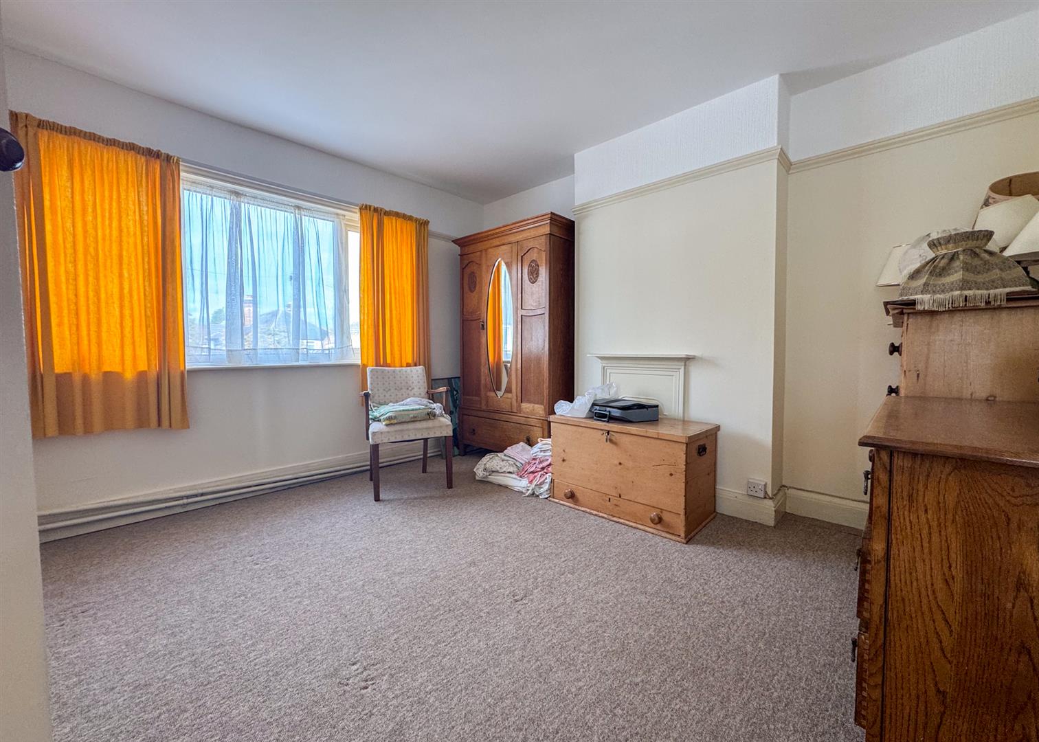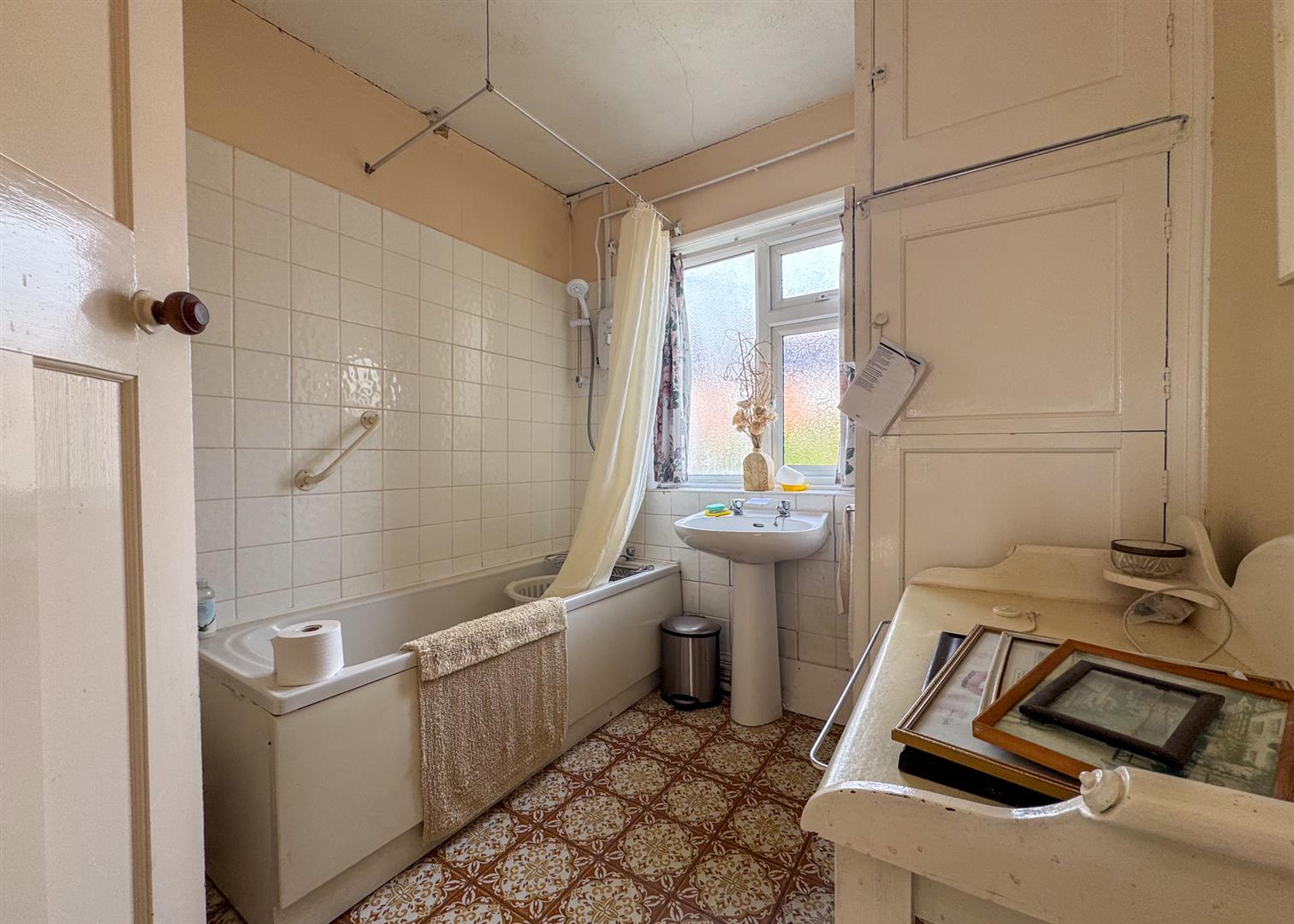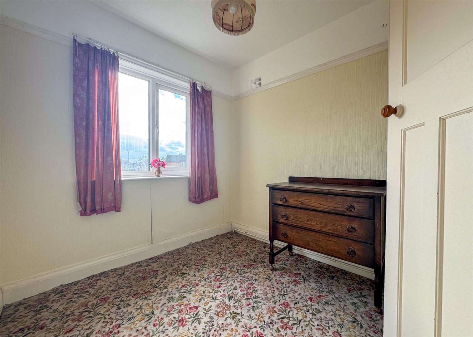 Upstairs, the home continues to offer generous proportions. There are two double bedrooms and a further single bedroom, all served by a family bathroom with built-in storage. Each room enjoys an airy, light-filled aspect — ideal foundations for those looking to modernise and create a home of contemporary comfort.