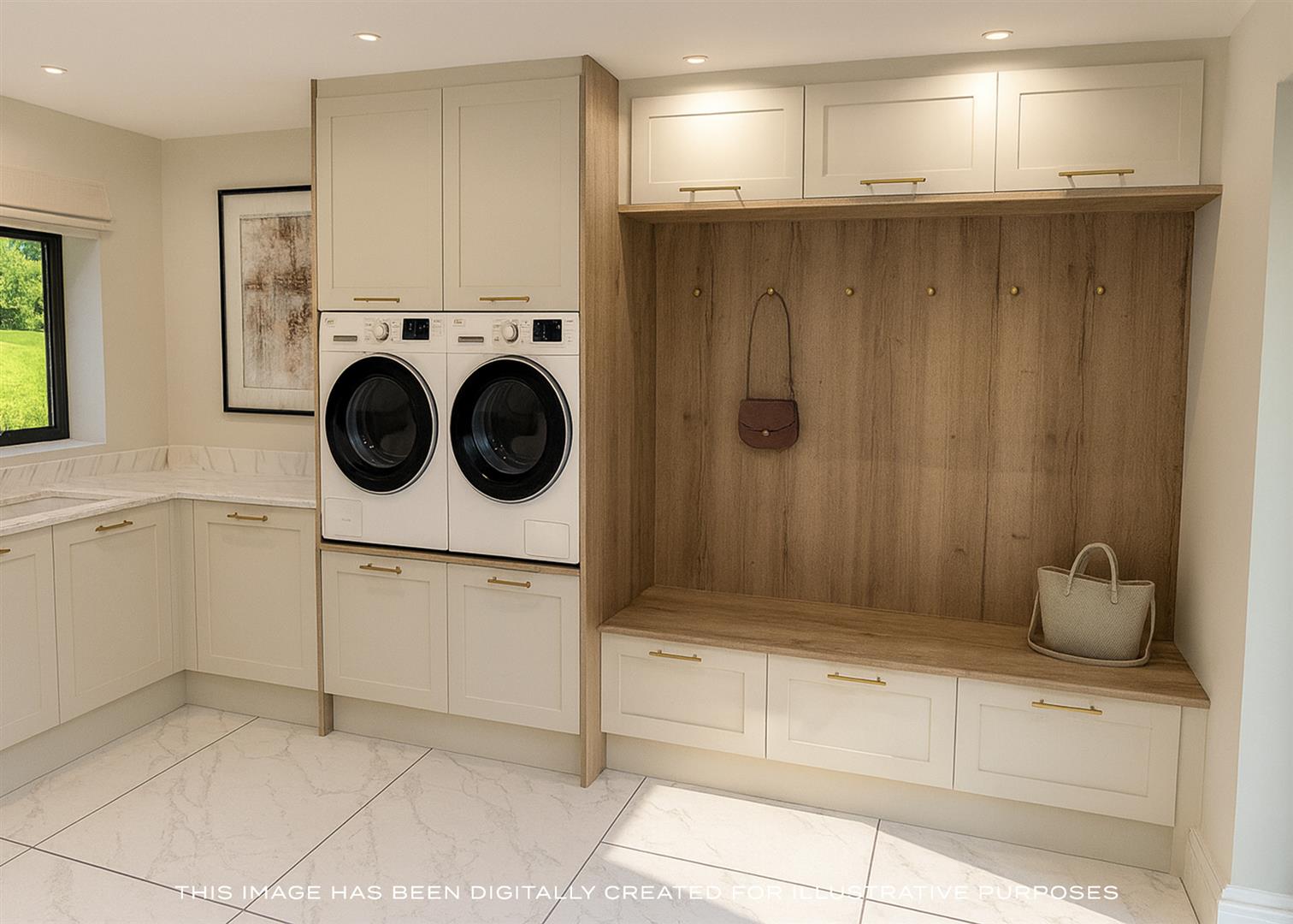 Inside, the layout flows beautifully. A welcoming entrance hall leads to a cloakroom, WC, utility/boot room and a private study, ideal for home working. The heart of the property is the stunning open-plan living dining kitchen, designed for both everyday family life and entertaining, with a feature wood-burning stove adding warmth and character.