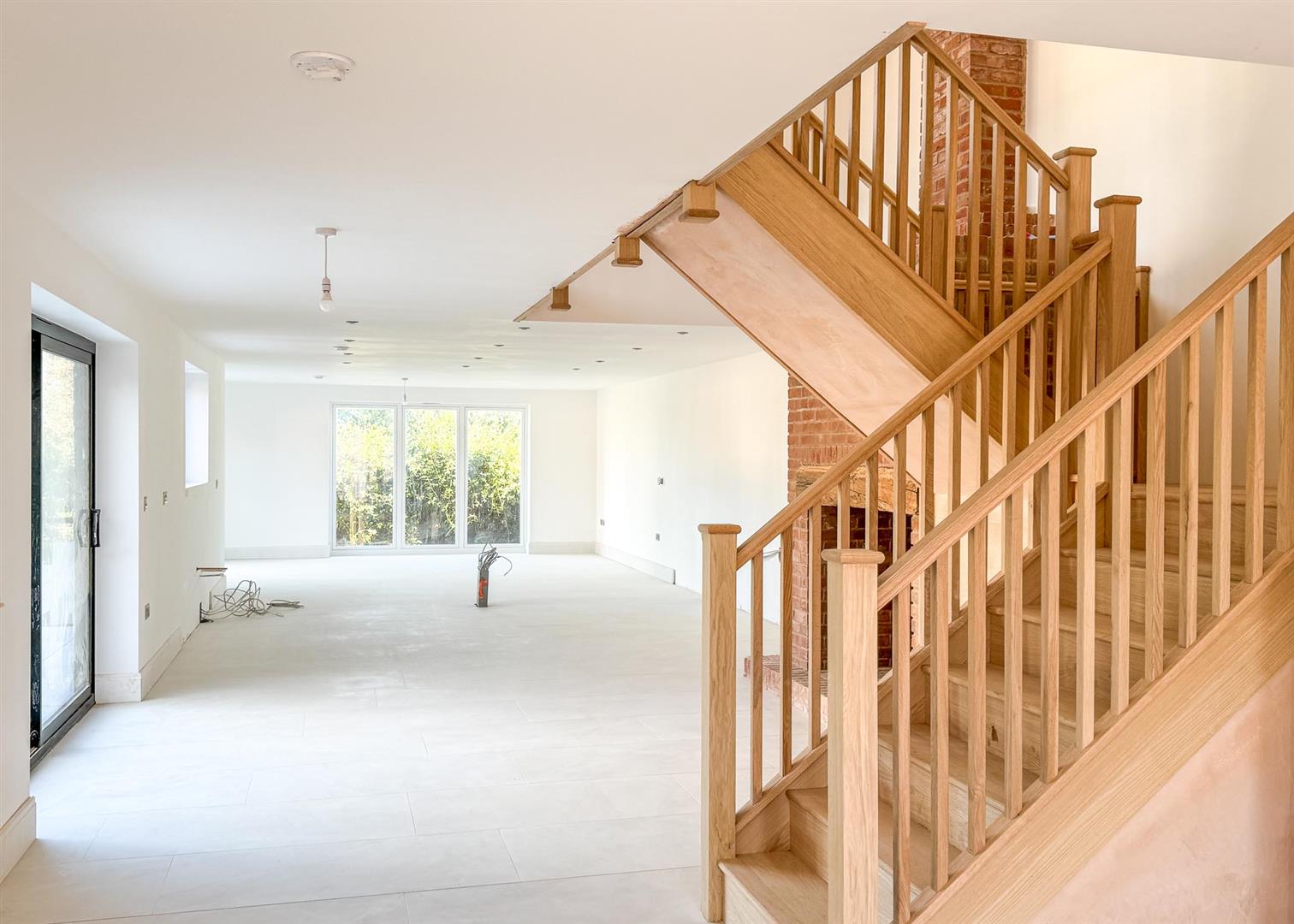 The first floor is arranged around an L-shaped galleried landing. The principal bedroom suite includes a dressing room and en-suite bathroom, while three further double bedrooms are served by a stylish family bathroom. Plans are also in hand to provide an additional en-suite, further enhancing the flexibility of the home.