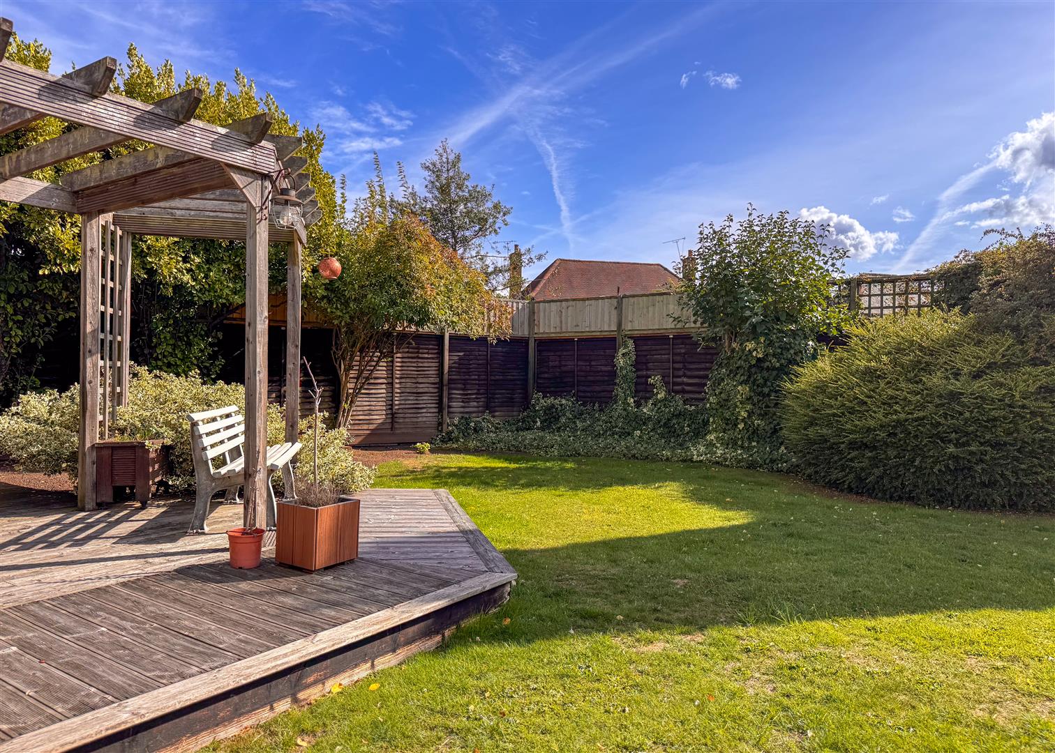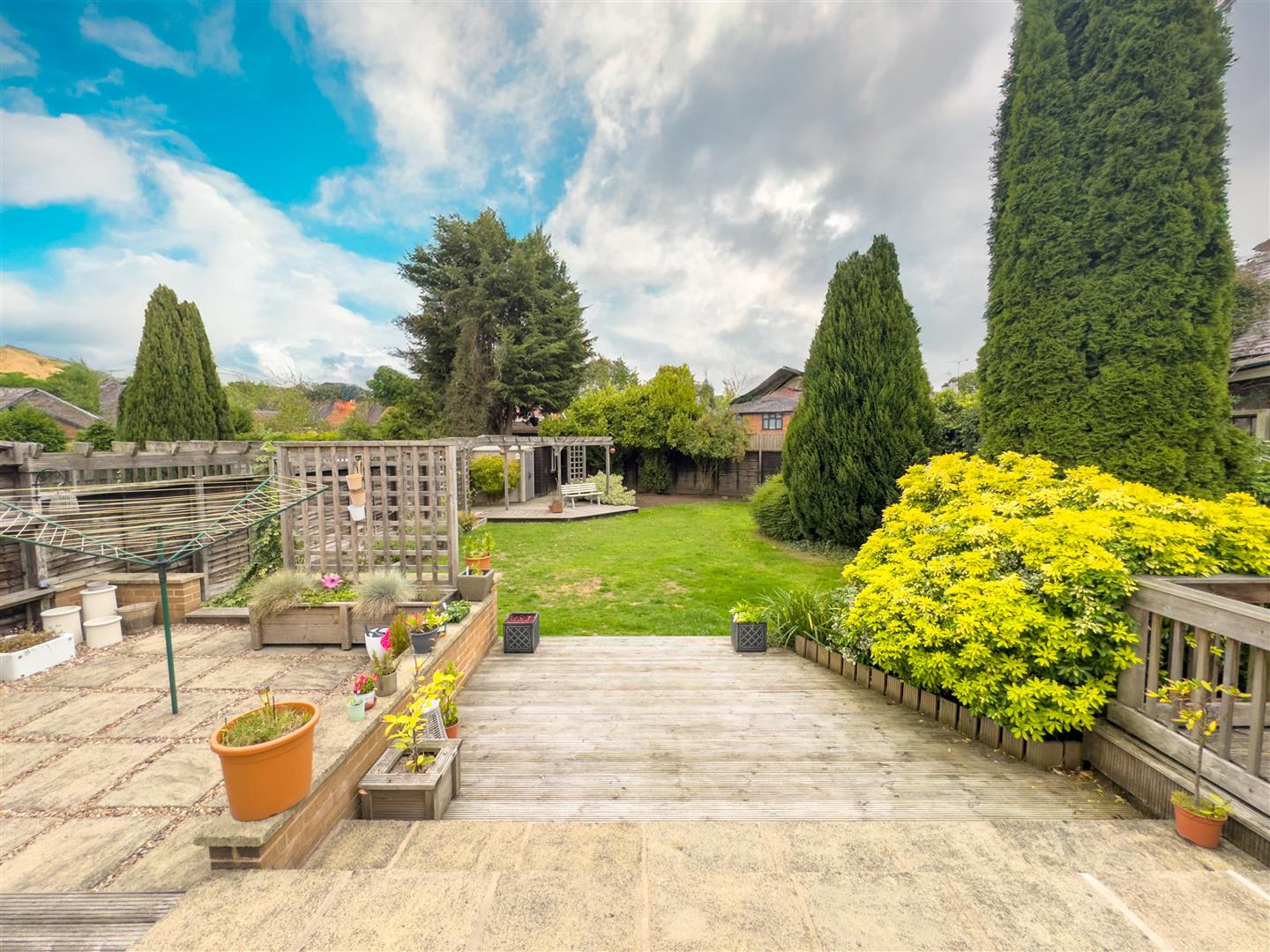 Externally, the rear garden is truly a highlight of this home. Mature, beautifully landscaped, and wonderfully private, it offers a variety of spaces to enjoy. The upper patio is ideal for al fresco dining and summer barbecues, while a second patio to the side provides flexibility - whether for outdoor drying or additional seating. To the right, a lowered decked area offers a lovely retreat for relaxing, while further down the garden you’ll find another decked terrace, perfect for catching the sun. The central lawn ties it all together, providing plenty of space for play, entertaining, or simply unwinding in a peaceful setting.