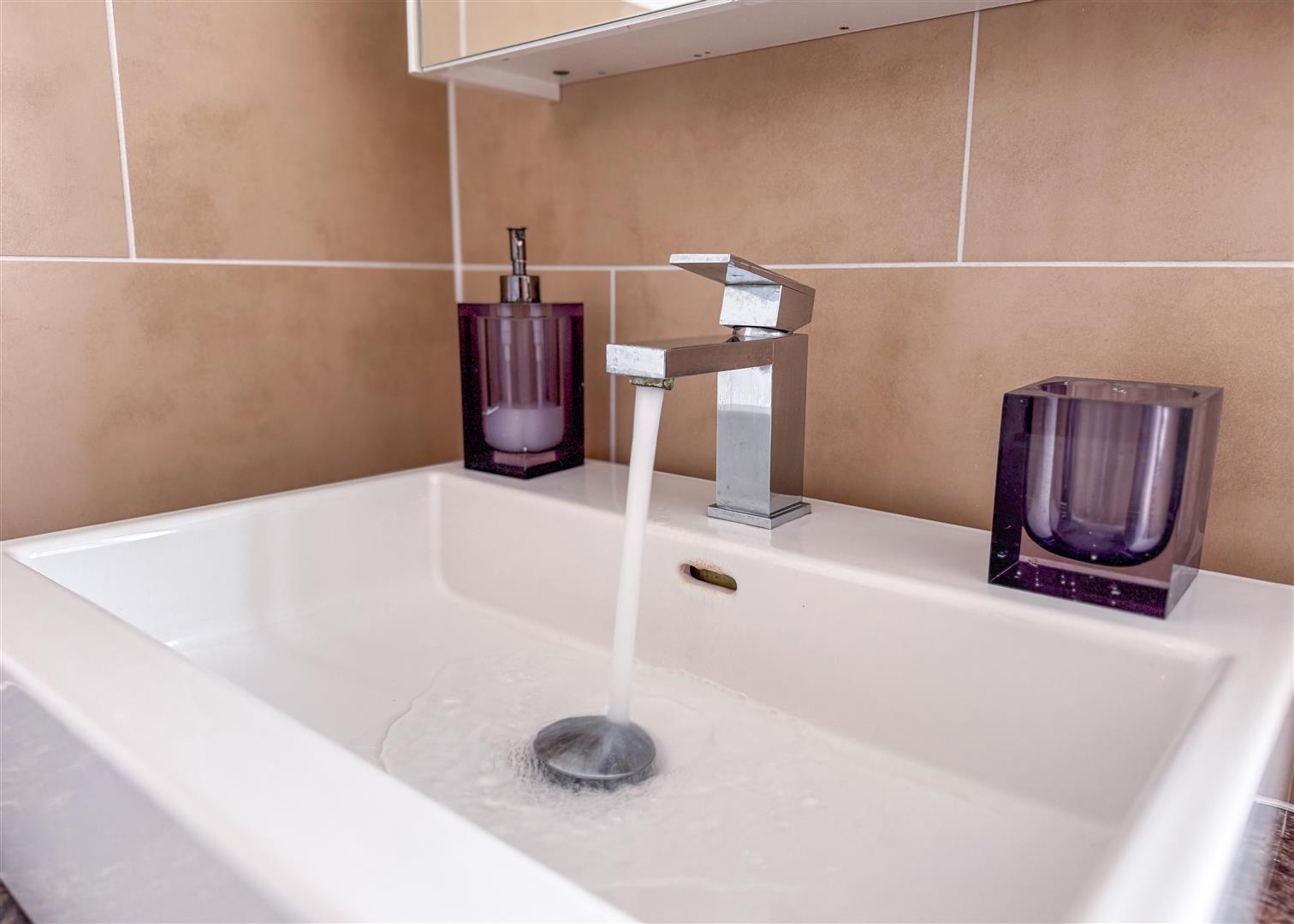 Back in the hallway, straight ahead is a handy downstairs shower room, complete with sink, toilet, and separate shower cubicle.