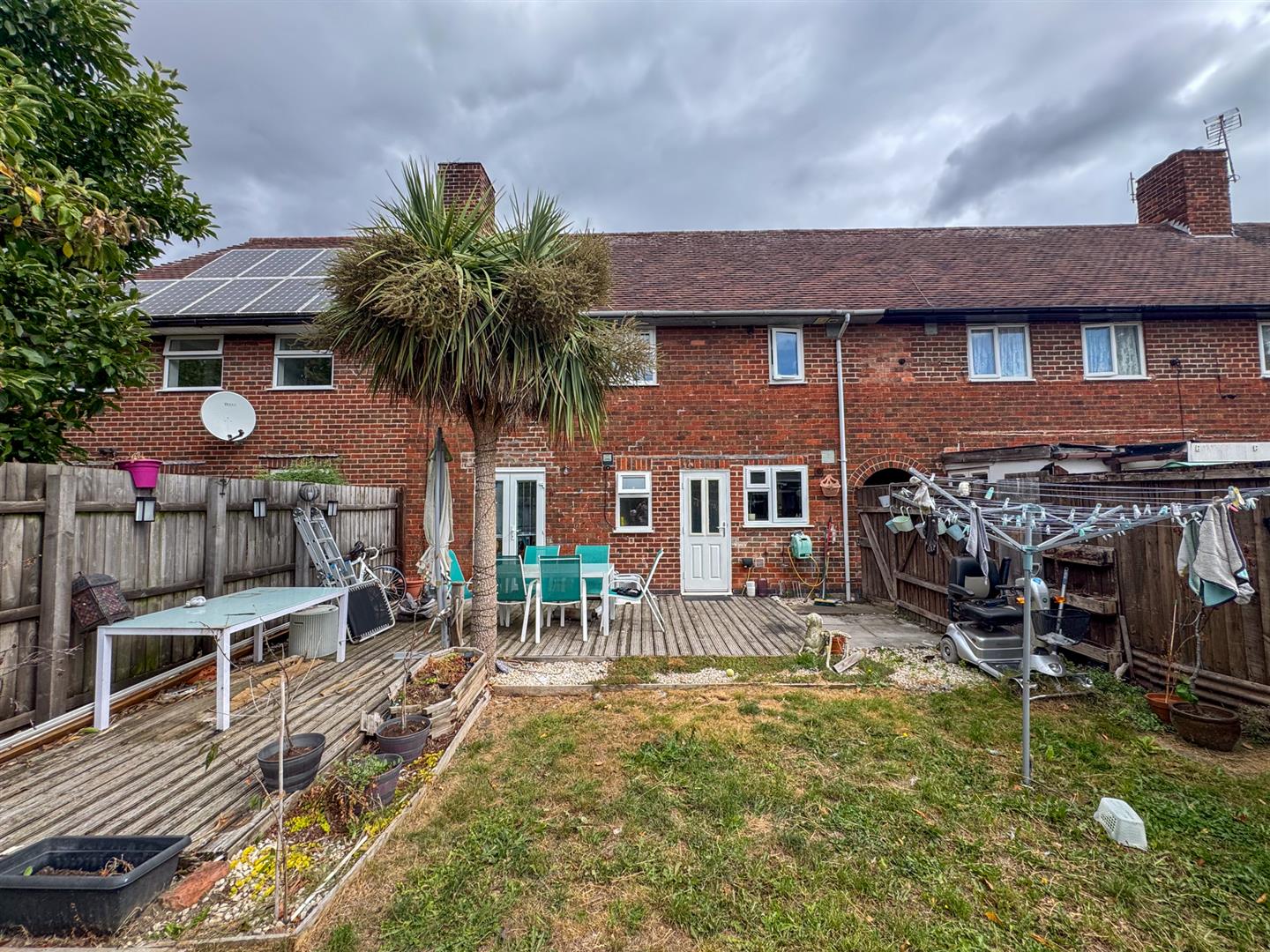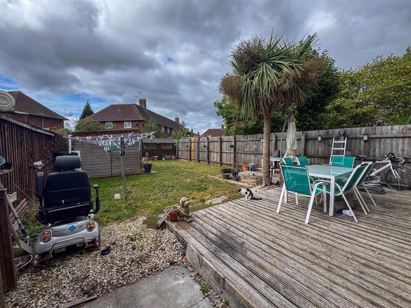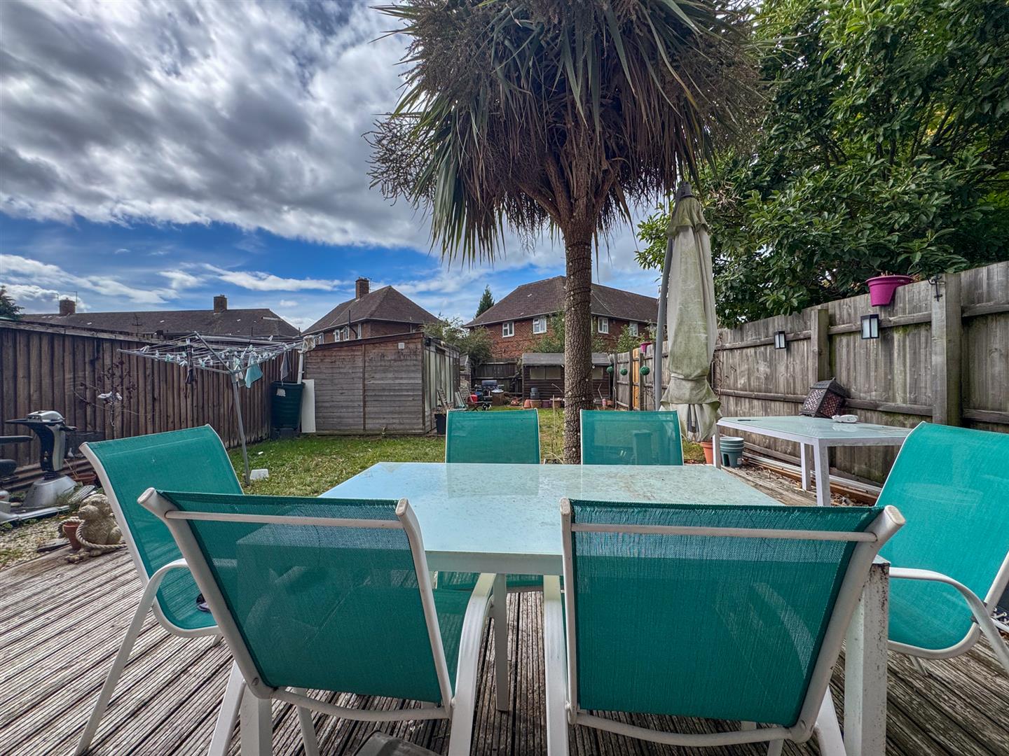 To the rear, the home enjoys a spacious garden with a decked entertaining area—perfect for summer gatherings and family barbecues. With its generous proportions and scope for further landscaping, it offers an excellent outdoor retreat