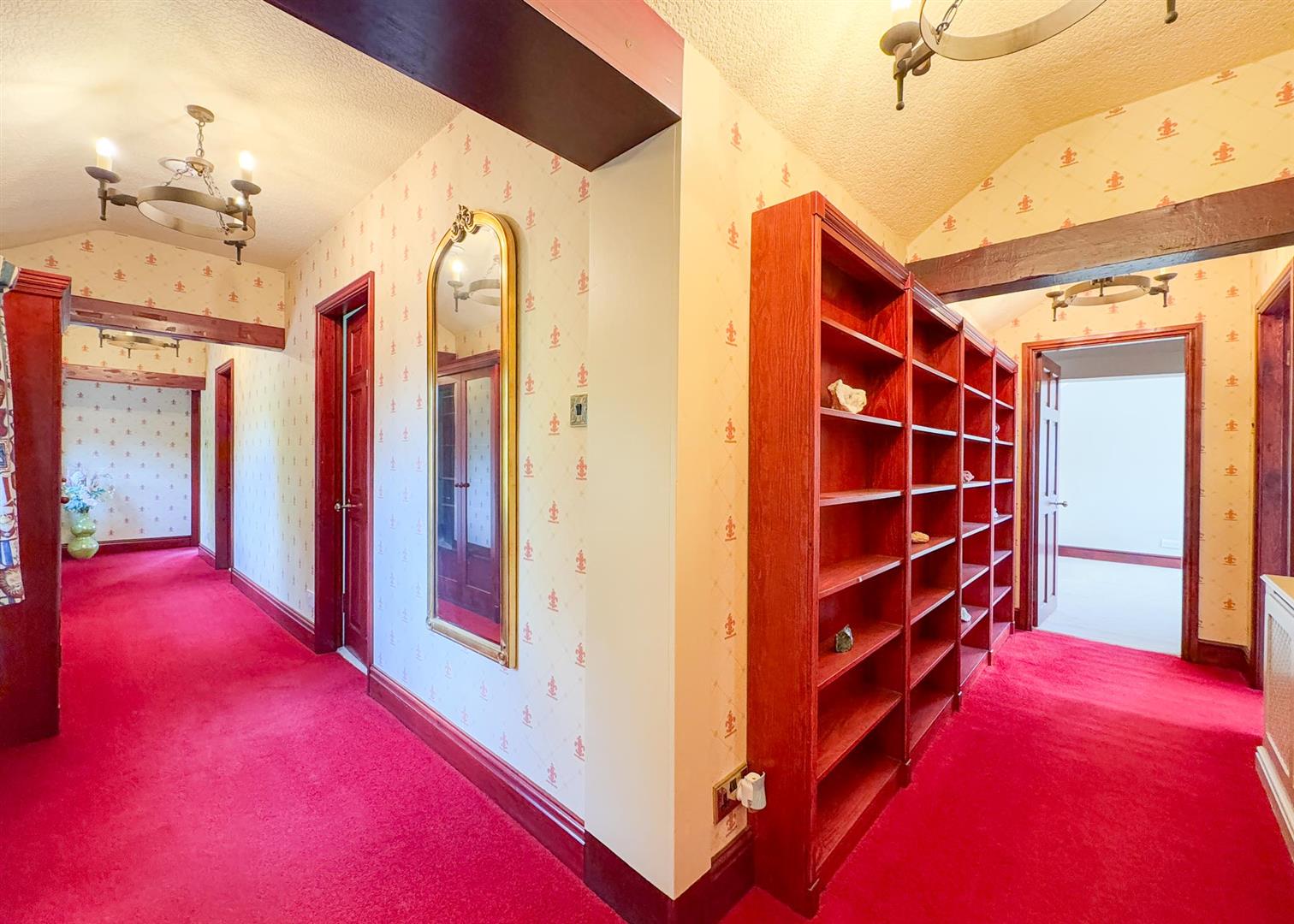 On the first floor, six generous double bedrooms provide refined accommodation, with two luxurious ensuite shower rooms and a family bathroom complete with a five-piece suite. Each room enjoys elevated views across the Wreake Valley and the property’s own parkland-style grounds, reinforcing a sense of serenity and seclusion rarely found so close to village life.
